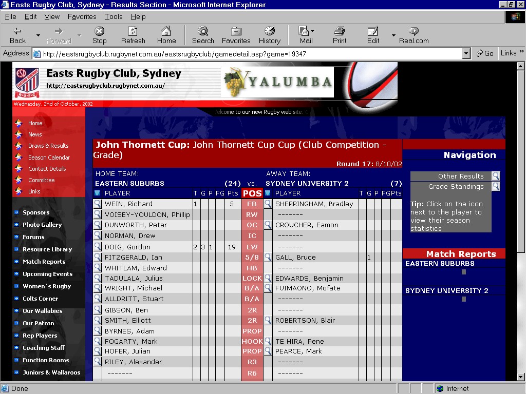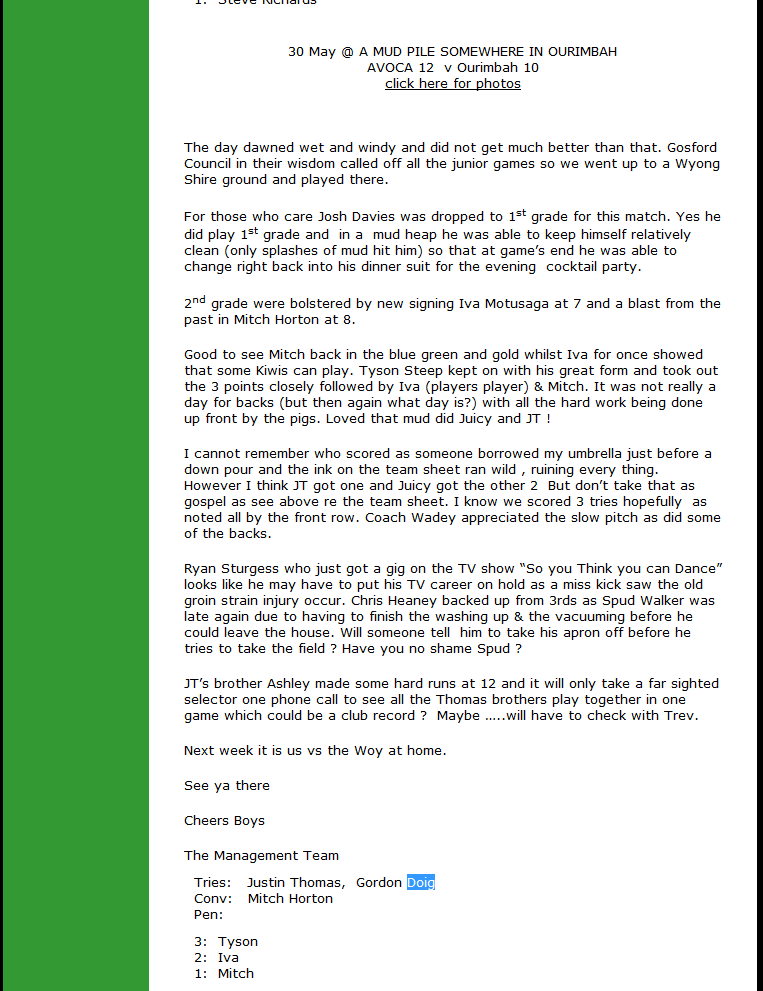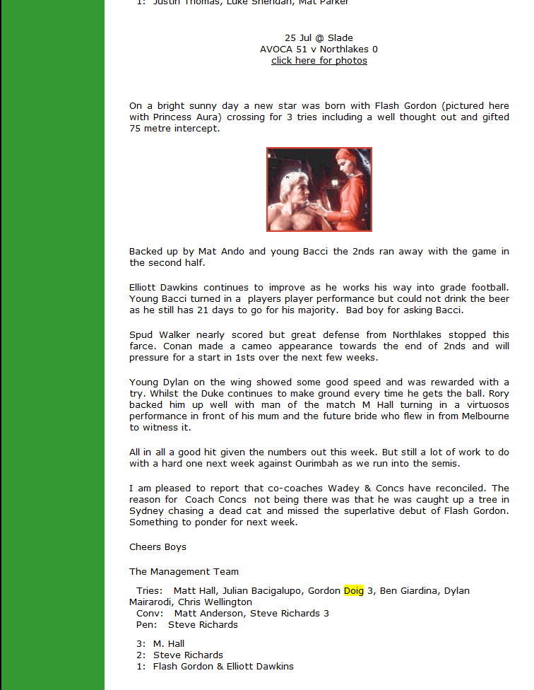 | My favorite game with Easts: Giving the students a lesson! | Link to a short footy video. Eastern Suburbs vs. Northern Suburbs. Keep your eyes on No. 11: |