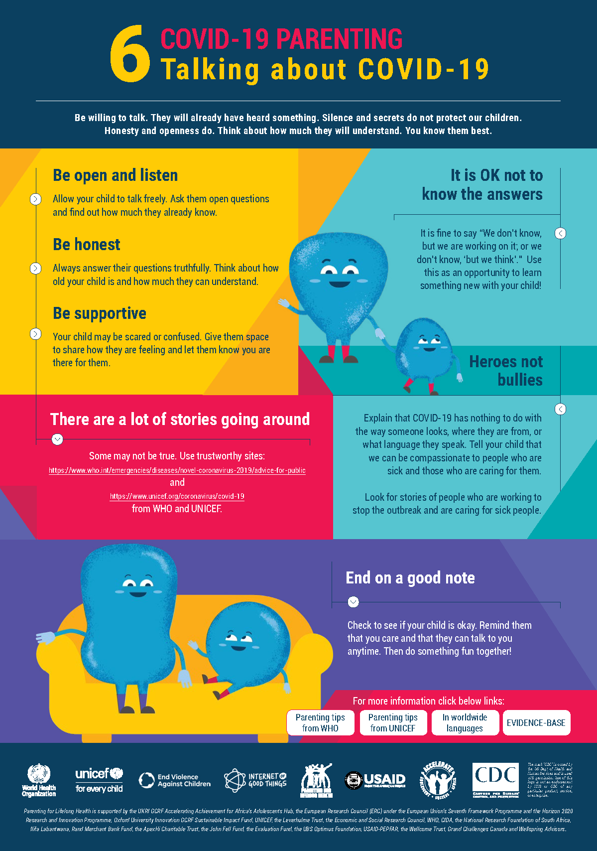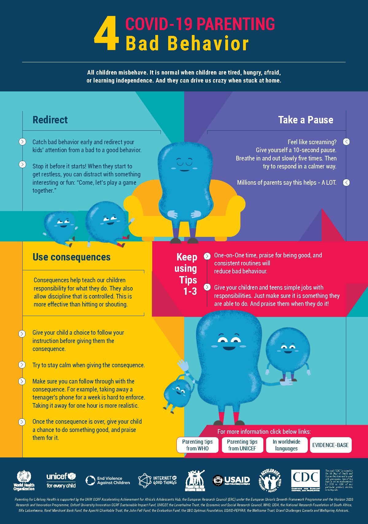These six one-page tips cover planning one-on-one time, staying positive, creating a daily routine, avoiding bad behavior, managing stress and talking about COVID-19.